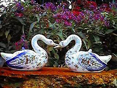 Vase rond bleu paysage par paire